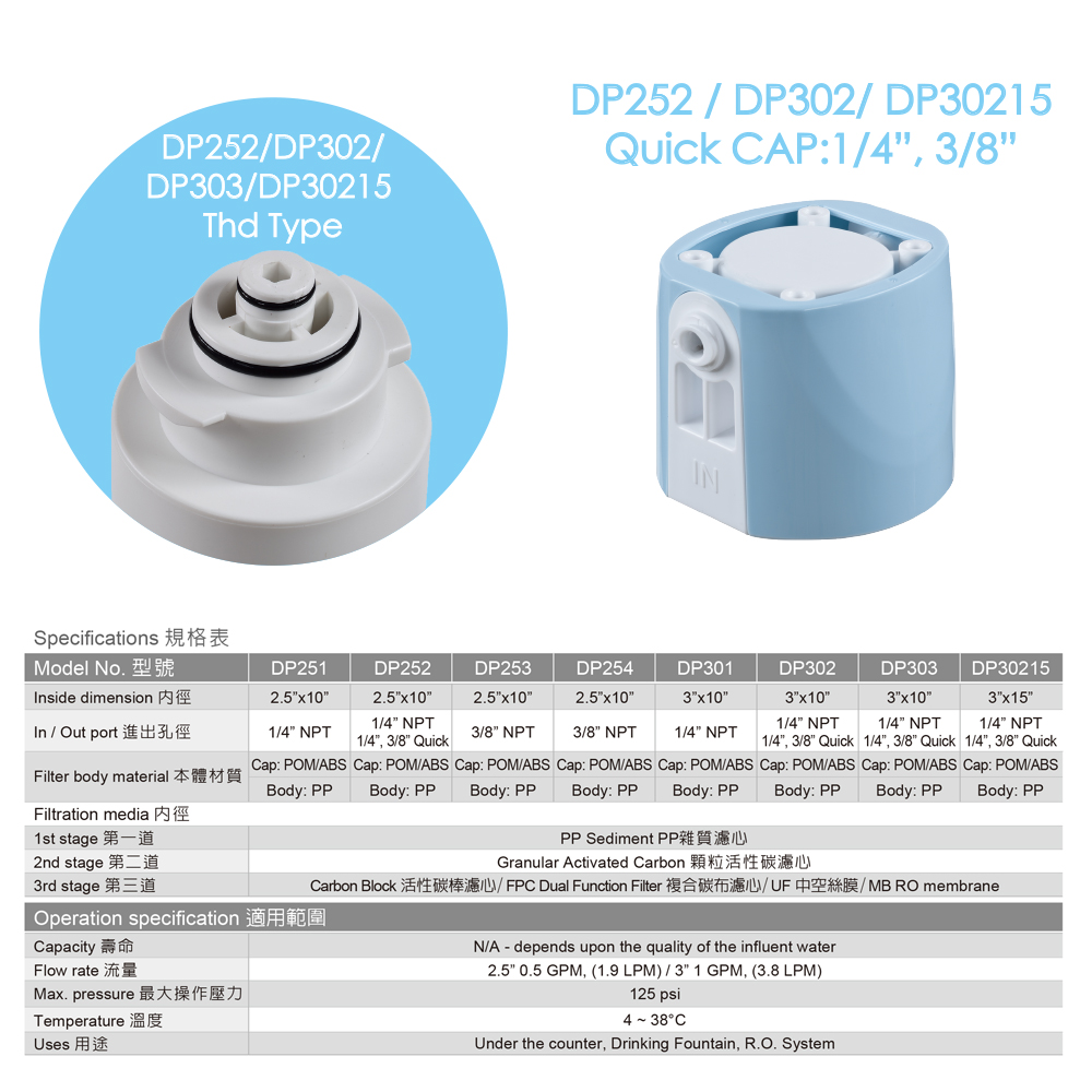 วัสดุของตัวกรอง:ฝาปิด:POM/ABS, ตัว:PP